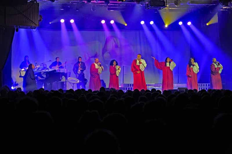 Sie alleine brauchten sich einfach nur auf die Bühne zu stellen und zu singen, die Harlem Gospel Singers, das wäre schon allein ein Hör- und Seherlebnis. Dann aber kam ein großer Tupfen auf dem „I“ hinzu und wurde wahrlich zu einem besonderen Showerlebnis. Die Rede ist von der Grande Dame der Gospelszene Queen Esther Marrow.